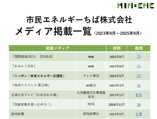 (千葉エコ・エネルギー、市民エネルギーちばの取材を含む)