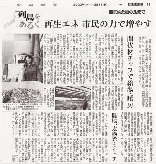 2022年2月1日発行の朝日新聞に、弊社みんエネと匝瑳市のソーラーシェアリングの記事を掲載いただきました。