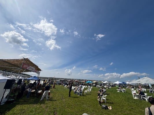 今年は会場となったソーラーシェアリング設備の下ではビール用大麦が元気に育ち、オーガニックフードのお店や環境系の団体ブースが並びました。竹遊具のジャングルジムは子どもたちに大人気で、時間も忘れて遊んでいました。ステージではキッズダンス、GOCOOの和太鼓、匝瑳高校軽音部の演奏などにトークも織り交ぜ、盛り上がっていました。天気にも恵まれ、一気に日焼けした人が増えたようです!